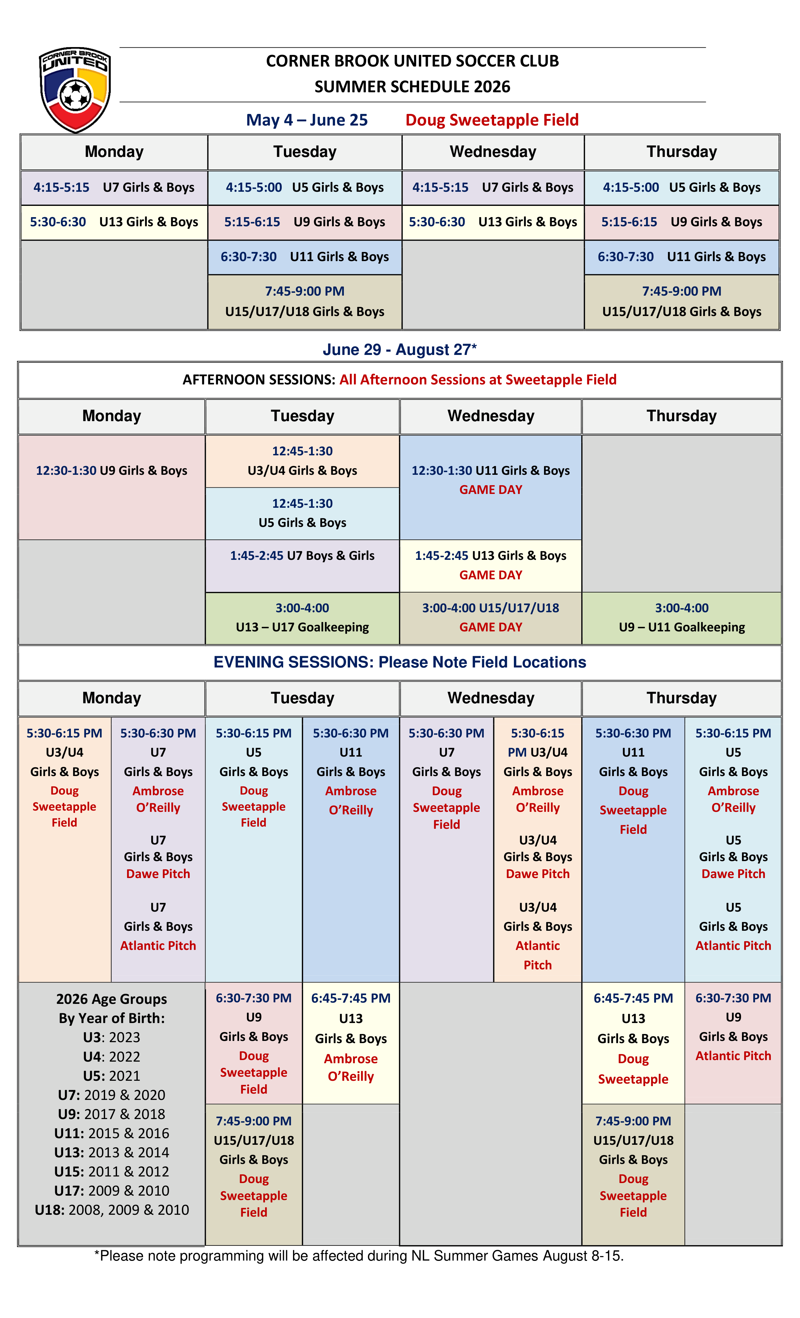 Summer 2026 Fees: